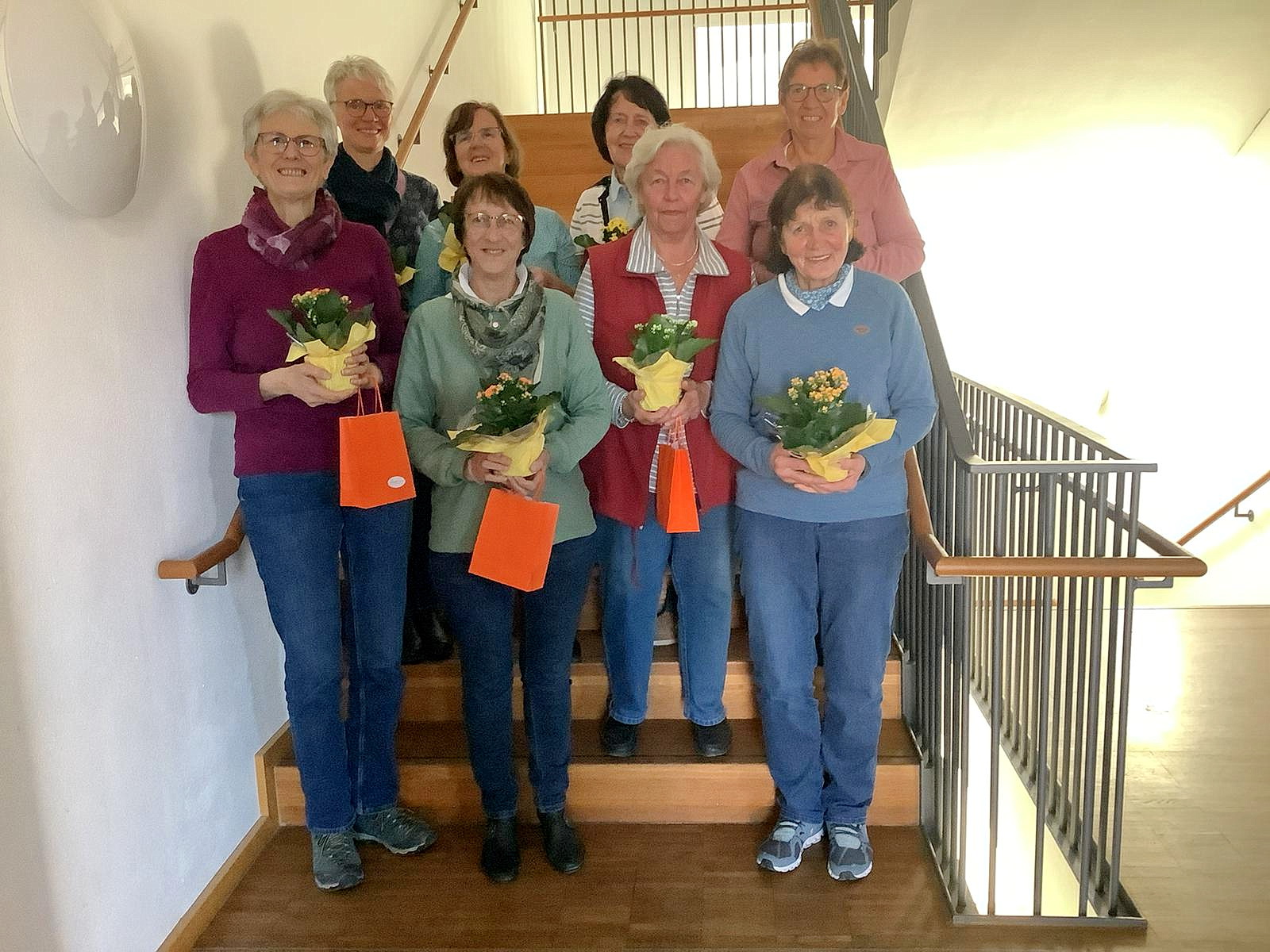 Ehrungen von h.l. Riesemann-Lieb Antonie (20 Jahre); Rita Duesing (30 Jahre); Sabine Duerr (30 Jahre); Hedwig Mahl (30 Jahre) V.L: Roswitha Eder (20 Jahre); Rita Brade (20 Jahre); Ulrike Hipp (40 Jahre); Hanni Weiss (30 Jahre)